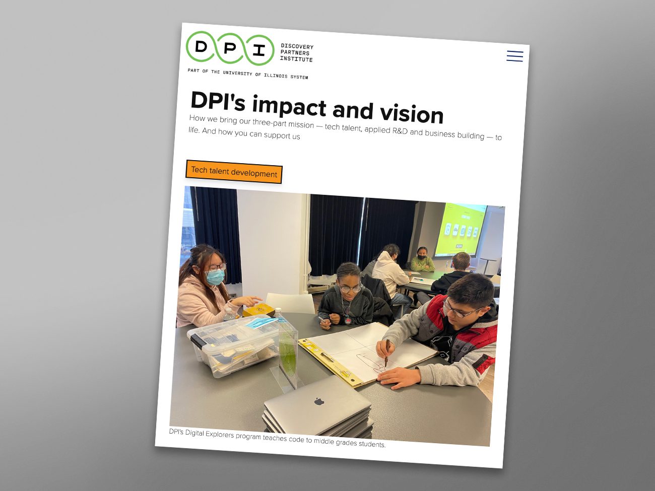 Led by the University of Illinois in partnership with top research universities, DPI does three things: train people for high-demand tech jobs, conduct applied R&D, and business building to grow Chicago’s tech ecosystem.
